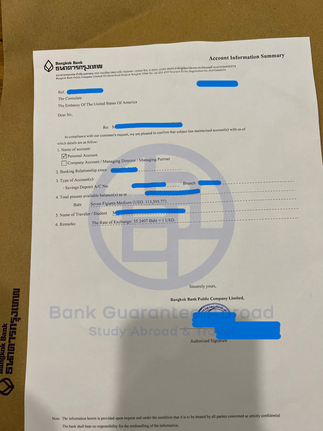 บริการให้เช่าเงินเพื่อขอเอกสารรับรองบัญชี ใช้สำหรับขอวีซ่าเดินทางไปศึกษาต่อยังต่างประเทศ
